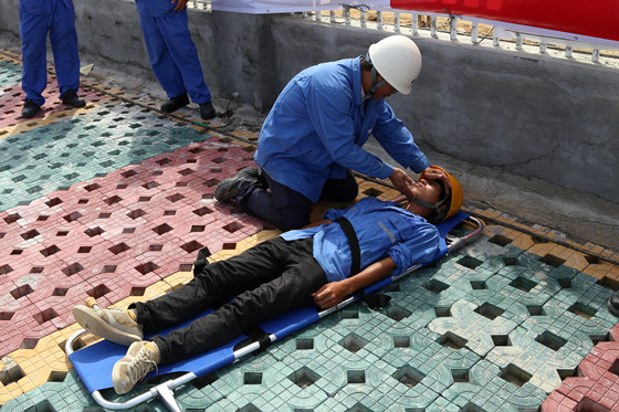 上午9時(shí),消防演練正式拉開帷幕。防波堤項(xiàng)目部某處“突發(fā)火情”,現(xiàn)場(chǎng)產(chǎn)生大量“濃煙”,值班人員發(fā)現(xiàn)火情后立即上報(bào)應(yīng)急救援小組,應(yīng)急救援總指揮立即啟動(dòng)應(yīng)急預(yù)案并組織救援小組火速趕到現(xiàn)場(chǎng)進(jìn)行滅火、救治傷病人員和組織職工安全有序的疏散撤離。各救援隊(duì)伍根據(jù)自己的職能分工積極展開救援行動(dòng)。