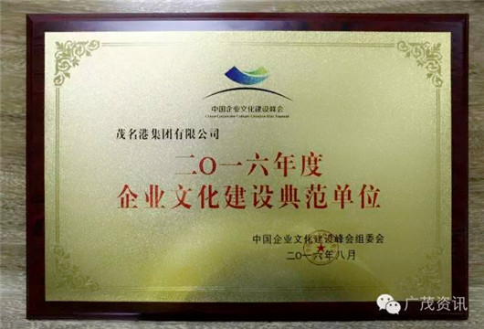 8月27日至28日, 2016年中國企業(yè)文化建設(shè)峰會(huì)在山西太原召開,表彰了2016年度企業(yè)文化建設(shè)典范企業(yè)、先進(jìn)單位和優(yōu)秀工作者,交流了企業(yè)文化建設(shè)優(yōu)秀成果。茂名港集團(tuán)以良好的業(yè)績和卓越的企業(yè)文化建設(shè)成果,榮獲“2016年度企業(yè)文化建設(shè)典范企業(yè)”稱號(hào),這是集團(tuán)繼2015年后再次獲此殊榮。集團(tuán)黨委委員、黨群部部長黃遠(yuǎn)維代表公司出席表彰大會(huì)并上臺(tái)領(lǐng)獎(jiǎng)。