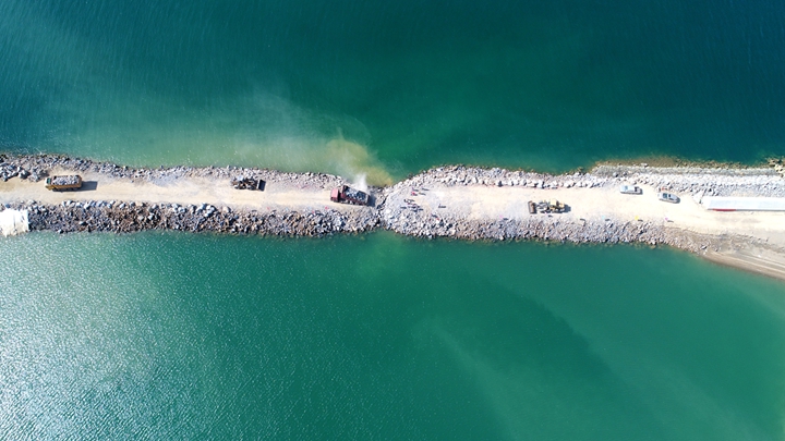 在粵西LNG造陸項目現(xiàn)場,趙廣輝認真聽取了項目負責人員關(guān)于項目合攏情況的匯報,詳細了解項目后續(xù)工作規(guī)劃。他肯定了茂名港集團作為業(yè)主單位在項目建設(shè)過程中不等不靠、主動作為,在與東西防波堤工程體量相當?shù)那闆r下,克服了資金緊、任務重、風險大、協(xié)調(diào)難等重重困難,在疫情期間解決了復工難的問題,順利實現(xiàn)了項目的合攏,標志著粵西LNG造陸項目基本具備交地條件,再次創(chuàng)造了屬于茂名港人的奇跡。他指出,粵西LNG造陸項目的建成,為粵西LNG接收站項目的落地夯實了基礎(chǔ),對濱海新區(qū)發(fā)展綠色臨港產(chǎn)業(yè)具有重要而深遠的意義。他希望茂名港集團繼續(xù)發(fā)揮好濱海新區(qū)籌融資和項目建設(shè)平臺作用,充分總結(jié)、運用粵西LNG造陸項目建設(shè)管理經(jīng)驗,攻堅克難,進一步助力濱海新區(qū)加快向海而興發(fā)展。