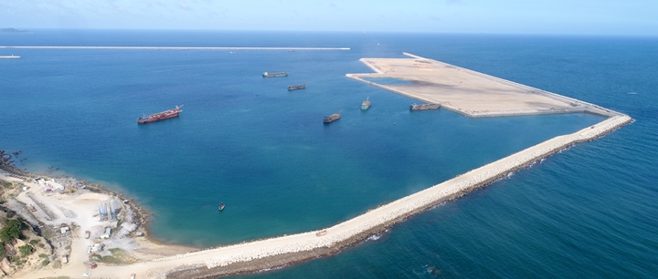 趙廣輝一行乘船深入博賀新港區(qū),實地調(diào)研10萬噸級成品油碼頭、30萬噸級原油碼頭、粵西LNG造陸項目建設(shè)進展,認真聽取了有關(guān)工作情況匯報,研究部署下一步工作計劃,并重點對粵西LNG造陸項目的合攏情況進行了考察。