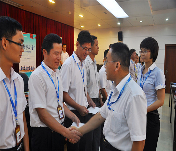 在會(huì)上,茂名港集團(tuán)全體干部職工觀看了公司兩部宣傳片,形象地了解了公司的定位和發(fā)展方向。接著會(huì)上對(duì)評(píng)選出來(lái)的第一季度“建言獻(xiàn)策”9名優(yōu)秀提案獲得者和14名“進(jìn)步之星”獲得者進(jìn)行了表彰和頒獎(jiǎng),勉勵(lì)他們?cè)俳釉賲,為公司發(fā)展貢獻(xiàn)更多智慧與力量,也為廣大職工樹(shù)立起榜樣!敖ㄑ垣I(xiàn)策”獲獎(jiǎng)?wù)叽韽埲髋c“進(jìn)步之星”獲獎(jiǎng)?wù)叽硇旖ê影l(fā)表了熱情洋溢、感人肺腑的獲獎(jiǎng)感言,他們都為在茂名港集團(tuán)這個(gè)氛圍和諧融洽、充滿激情與斗志的集體工作而感到驕傲,表示要繼續(xù)盡心盡力做好自己的本職工作,為茂名港集團(tuán)發(fā)展壯大而努力。胡軍董事長(zhǎng)在會(huì)上對(duì)獲獎(jiǎng)?wù)弑硎玖俗YR,他在會(huì)上和大家分享了茂名港集團(tuán)企業(yè)文化的構(gòu)建過(guò)程、核心文化、企業(yè)精神、品牌口號(hào)等內(nèi)容,并希望每一位職工都深入領(lǐng)會(huì)茂名港企業(yè)文化,同時(shí)他指出茂名港集團(tuán)能在短短不到兩年的時(shí)間內(nèi)取得令人矚目的成績(jī),歸根結(jié)底是在集團(tuán)優(yōu)秀的企業(yè)文化引領(lǐng)下,全集團(tuán)員工團(tuán)結(jié)拼搏、開(kāi)拓進(jìn)取的結(jié)果。他希望通過(guò)這次企業(yè)文化活動(dòng)的開(kāi)展,進(jìn)一步凝聚每一位職工的智慧,全體茂名港人團(tuán)結(jié)一致,擰成一股繩,推動(dòng)公司不斷向前進(jìn),為提升茂名港共同品牌價(jià)值而努力奮斗。