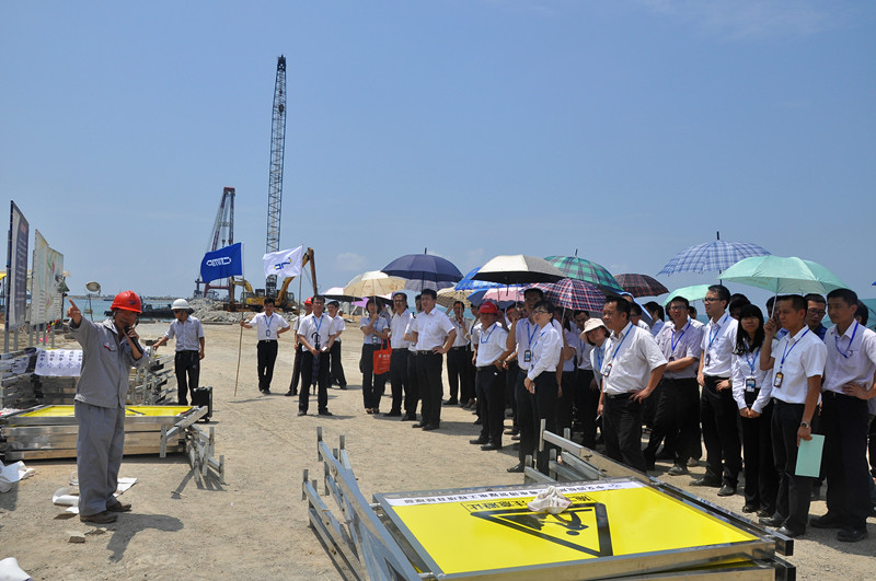 在胡軍董事長的帶領(lǐng)下,調(diào)研隊(duì)深入博賀灣大道、博賀新港區(qū)防波堤、博賀粵電煤炭碼頭、博賀粵電發(fā)電廠等施工現(xiàn)場,詳細(xì)了解各項(xiàng)重大工程的進(jìn)展情況。每到一個(gè)項(xiàng)目的建設(shè)現(xiàn)場,胡軍董事長都充滿激情地和大家分享其規(guī)劃、定位、發(fā)展方向等內(nèi)容,力求每一位干部職工都清楚茂名港的未來所在。他指出茂名博賀灣、博賀新港區(qū)承載著茂名港崛起的夢想,這里就是茂名港集團(tuán)的主戰(zhàn)場,是我們的希望和未來。調(diào)研組在每個(gè)項(xiàng)目的建設(shè)現(xiàn)場,都看到挖掘機(jī)、推土機(jī)、起重機(jī)在轟鳴,一輛輛運(yùn)土石車川流不息,宏大的建設(shè)場面,熱火朝天的景象,鼓舞人心。何志亮,是港口經(jīng)營公司的老職工,見證了茂名水東港幾十年的發(fā)展歷程,他參加調(diào)研后,他感慨地說:“這樣宏大的建設(shè)場景,我在茂名從來沒有見過,茂名港集團(tuán)大有所為!”